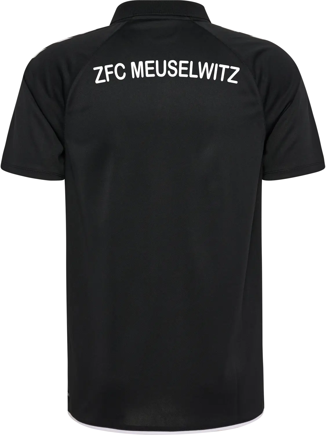Das Polo-Shirt ist mit dem ZFC-Logo auf der Brust und der Schriftzug „ZFC Meuselwitz“ auf dem Rücken veredelt.